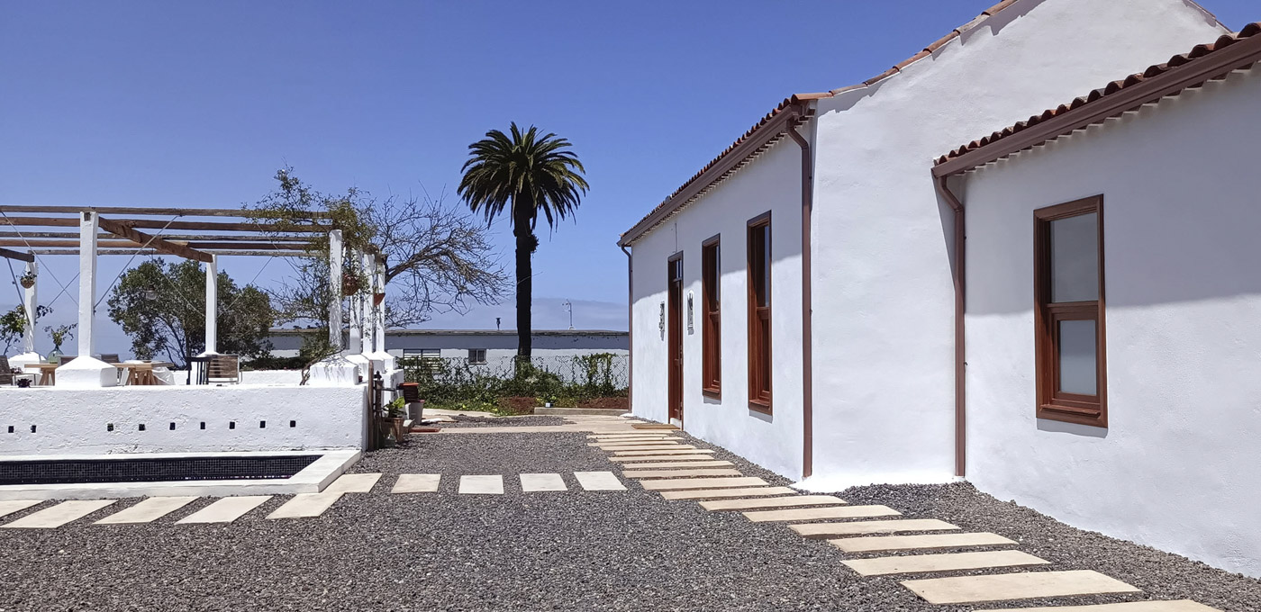 Por otro lado, la cubierta compuesta por tea de pino canario de tono rojizo fue reconstruida por un carpintero local de la isla con el sistema tradicional reutilizando elementos originales y materiales de cercanía.